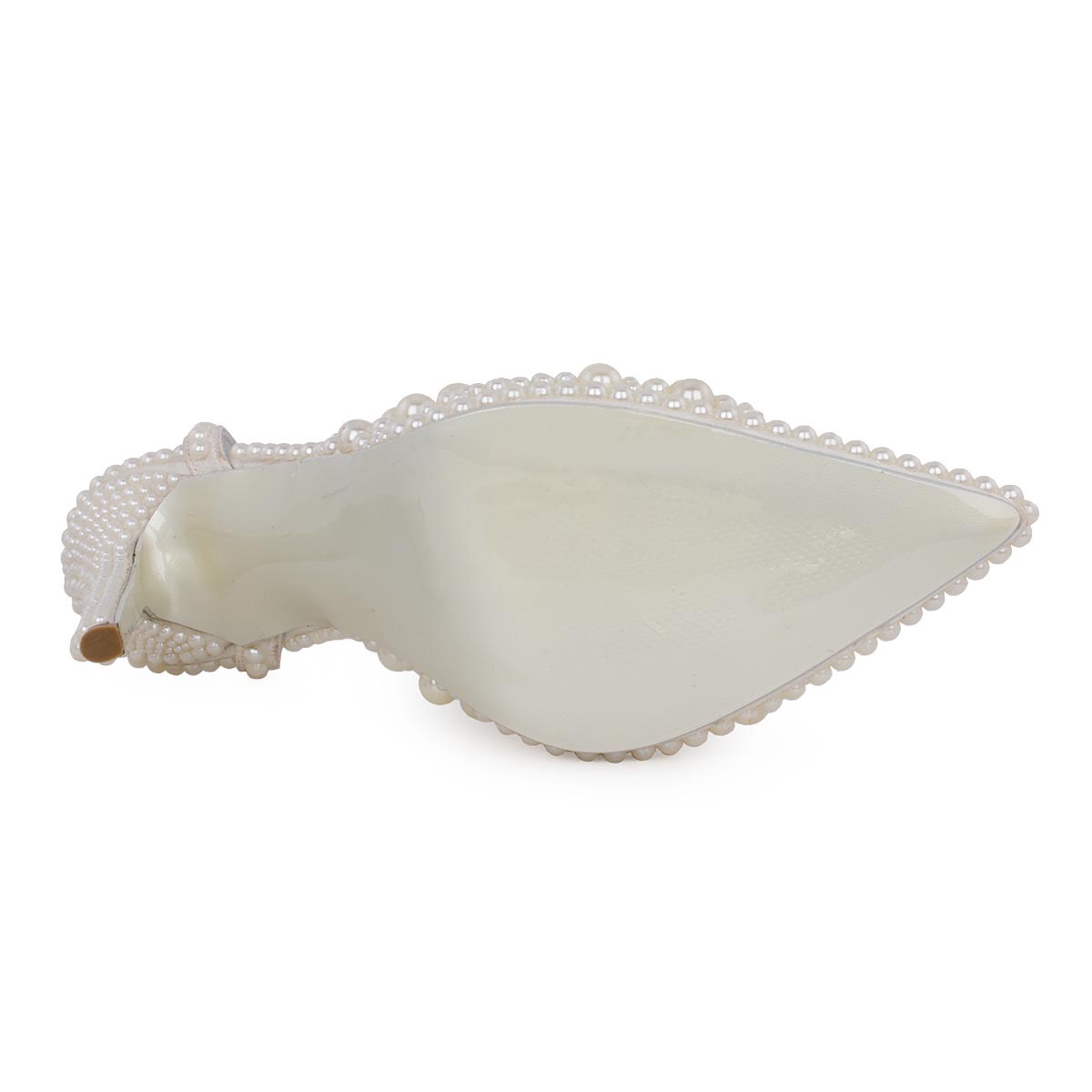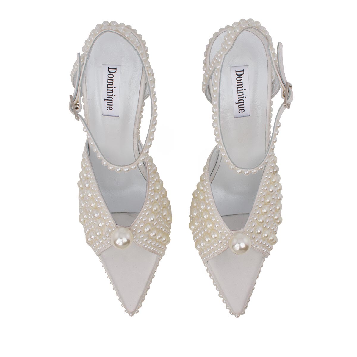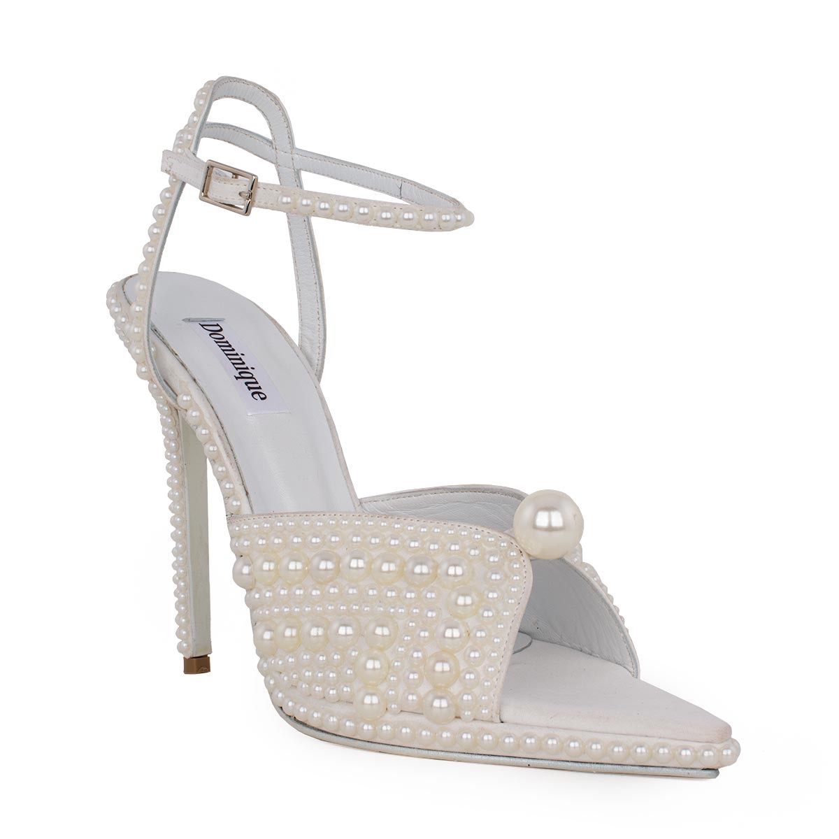 Πέδιλο διακοσμήμενο με πέρλες, λεπτό τακουνι και λουράκι στον αστράγαλλο.